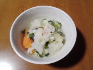 ※野菜を多めにした中華風粥ですませました。野菜のビタミンで今日は久しぶりに