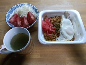 ※久しぶりにカップ焼きそばにしてみました。ちょうど牛丼用に買った紅ショウガも