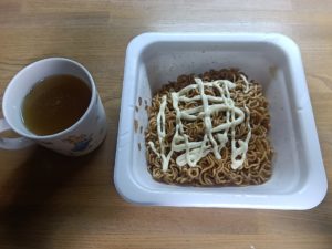 かなり夜遅くなっていたので、簡単にカップ焼きそばにしました。