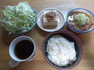※昨日のもつ煮の残りにしました。今日は特別用事が無ければ午後移動する意思が