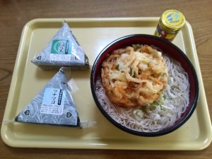 それだけでは寂しいのでかき揚げとおにぎりを買ってきて、十分かなと思った