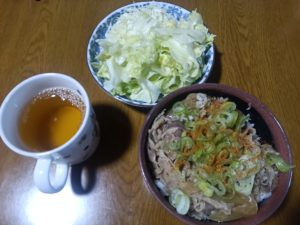 ※午後から移動予定なので、洗い物が少なくて済む牛丼にしました。