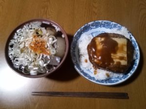 おでん、ハンバーグ、ごはん