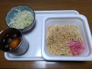 カップ焼きそば、サラダ