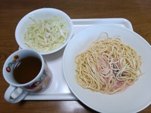 たらこスパゲティ、サラダ