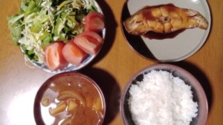 朝昼兼用納豆、豆腐、サラダ、ごはん、みそ汁 一食あたり 約190円、 カロリー 約570kcal、 塩分 約3.1g※いつものヘルシーメニューにみそ汁をつけました。晩御飯カレイの煮つけ、サラダ、ごはん、みそ汁 一食あたり 約400円、 カロ...